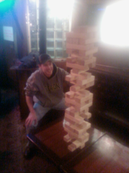 Jenga game. Same as the store game except the pieces are made out of 2x3s. Very cool. Here are some pics from my phone. click to enlarge. Notice the one of